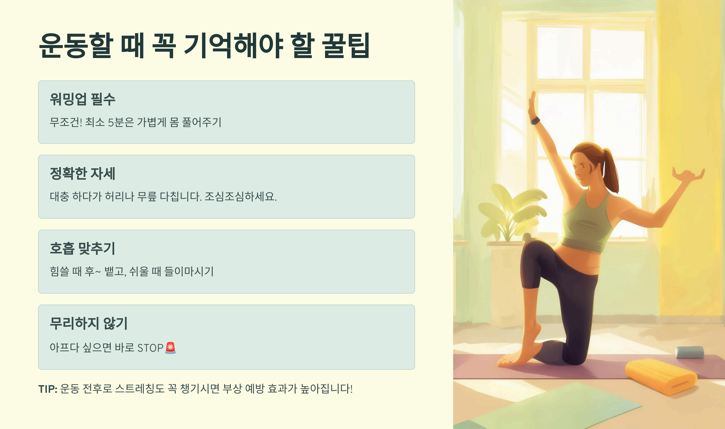 운동할 때 그냥 막 하면 안 되는 거 아시죠? 몇 가지만 기억하면 효과가 2배, 부상은 0이쥬🤭